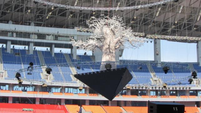2012南寧國際民歌藝術(shù)節(jié)開幕晚會(huì)舞臺(tái)重要元素之一——高科技的懸掛道具空中鋼樹