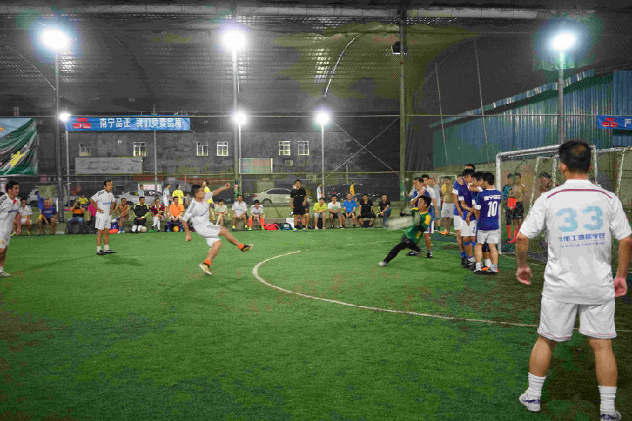 下半場開始,盡管大比分落后,市建管處憑借老道的經(jīng)驗(yàn)不急不燥控制著場上節(jié)奏,冷不丁連入兩球,6:4逼近比分。南寧品正籍著年輕、體力好,頻繁穿插跑動(dòng)封堵出球線路,由馮乙梃右路遠(yuǎn)射,再次以7:4拉開差距。隨著時(shí)間的流逝,建管處也開始緊張起來,南寧品正也略顯疲憊,在一次暫停后,建管處隨即加強(qiáng)攻勢(shì),第70分鐘將比分追成7:5,看到了追平的希望。離終場還剩10分鐘,建管處壓著南寧品正狂攻,第78分鐘,南寧品正守門員飛哥撲救脫手,第二反應(yīng)再補(bǔ)犯規(guī),點(diǎn)球!比賽來到了最高潮!除品正的啦啦隊(duì)外,全場球迷都在為落后的建管處加油!點(diǎn)球發(fā)出…守門員撲出(要知道品正的守門員已是58歲高齡啊,這反應(yīng))…頭球補(bǔ)射入網(wǎng)!一切都在電光火石之間發(fā)生,全場歡聲雷動(dòng)!比分追至7:6。建管處隊(duì)員都在激情長嘯、相互擊掌鼓勵(lì)。南寧品正沉著冷靜,中圈發(fā)球,趁建管處仍沉浸點(diǎn)球補(bǔ)進(jìn)的喜悅中立足未穩(wěn),由藍(lán)劍平帶球至左路突然起腳勁射,球砸中右立柱反彈入網(wǎng)!近處裁判果斷鳴哨手指中圈判進(jìn)球!另一名裁判仍在猶豫,跑過去詢問,才一致認(rèn)定進(jìn)球!離球門稍遠(yuǎn)的建管處隊(duì)員本有疑問,看到守門員和后衛(wèi)隊(duì)員遺憾的抱頭,也服從了判罰。從進(jìn)球到丟球這不到半分鐘的巨大落差,讓建管處的隊(duì)員們有些失落,時(shí)間也所剩無幾,最終定格在8:6。南寧品正驚險(xiǎn)取勝。