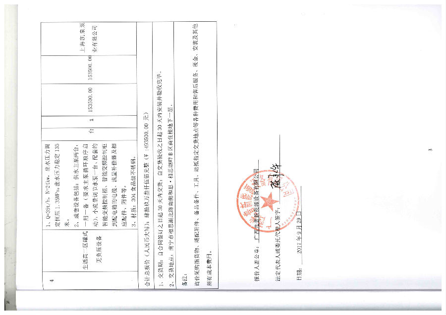 南寧品正建設(shè)咨詢有限責(zé)任公司受南寧市和思置業(yè)有限公司的委托,根據(jù)《中華人民共和國(guó)政府采購(gòu)法》等有關(guān)規(guī)定,于2017年9月29日就和思·相思湖畔B區(qū)商住樓無(wú)負(fù)壓供水設(shè)備采購(gòu)(NNPZ2017-675E)項(xiàng)目采用詢價(jià)方式進(jìn)行采購(gòu),現(xiàn)就本次招標(biāo)的中標(biāo)結(jié)果公告如下:
