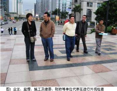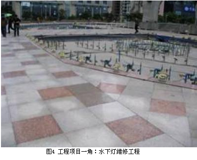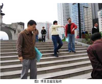 我公司負責該工程施工階段全過程監(jiān)理。工程內(nèi)容包括①土建維修,它又包括石材鋪裝、路面、噴泉水溝蓋板等維修;②亮化維修;③噴泉水下燈維修;④石凳設(shè)置。為更好地完成監(jiān)理工作,我公司派出了素質(zhì)好、能力強的監(jiān)理人員組建項目監(jiān)理處,他們認真負責、踏實工作,圓滿完成了監(jiān)理任務(wù),向政府和市民交出了一份滿意答卷。