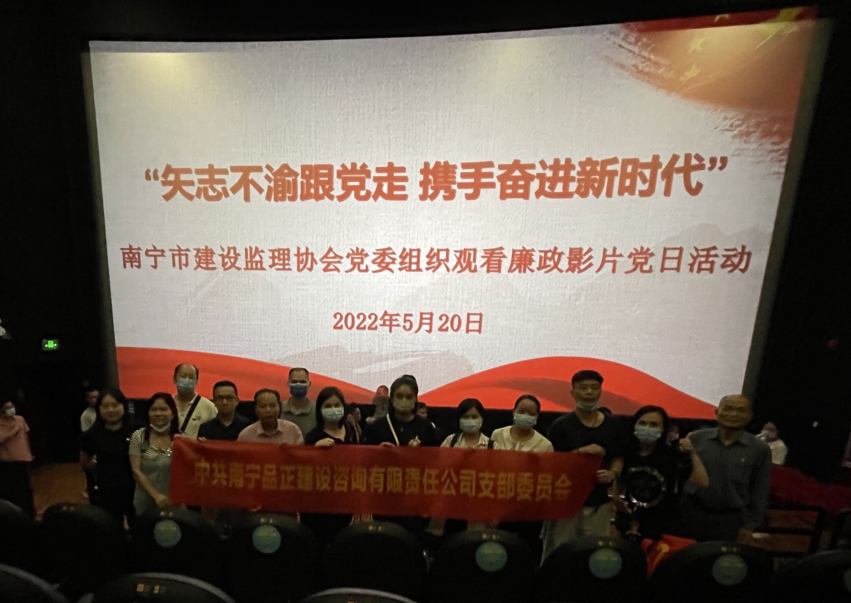 為進一步加強反腐倡廉教育,深入推進廉政文化建設(shè),學(xué)習(xí)貫徹習(xí)近平總書記關(guān)于黨風(fēng)廉政建設(shè)和反腐敗斗爭的重要言論,2022年5月20日下午,南寧市建設(shè)監(jiān)理協(xié)會黨委開展“黨風(fēng)廉政”主題黨日活動,組織觀看反腐倡廉電影《決不姑息》,接受黨風(fēng)廉政警示教育。公司黨支部組織全體黨員及入黨積極分子一起觀影。