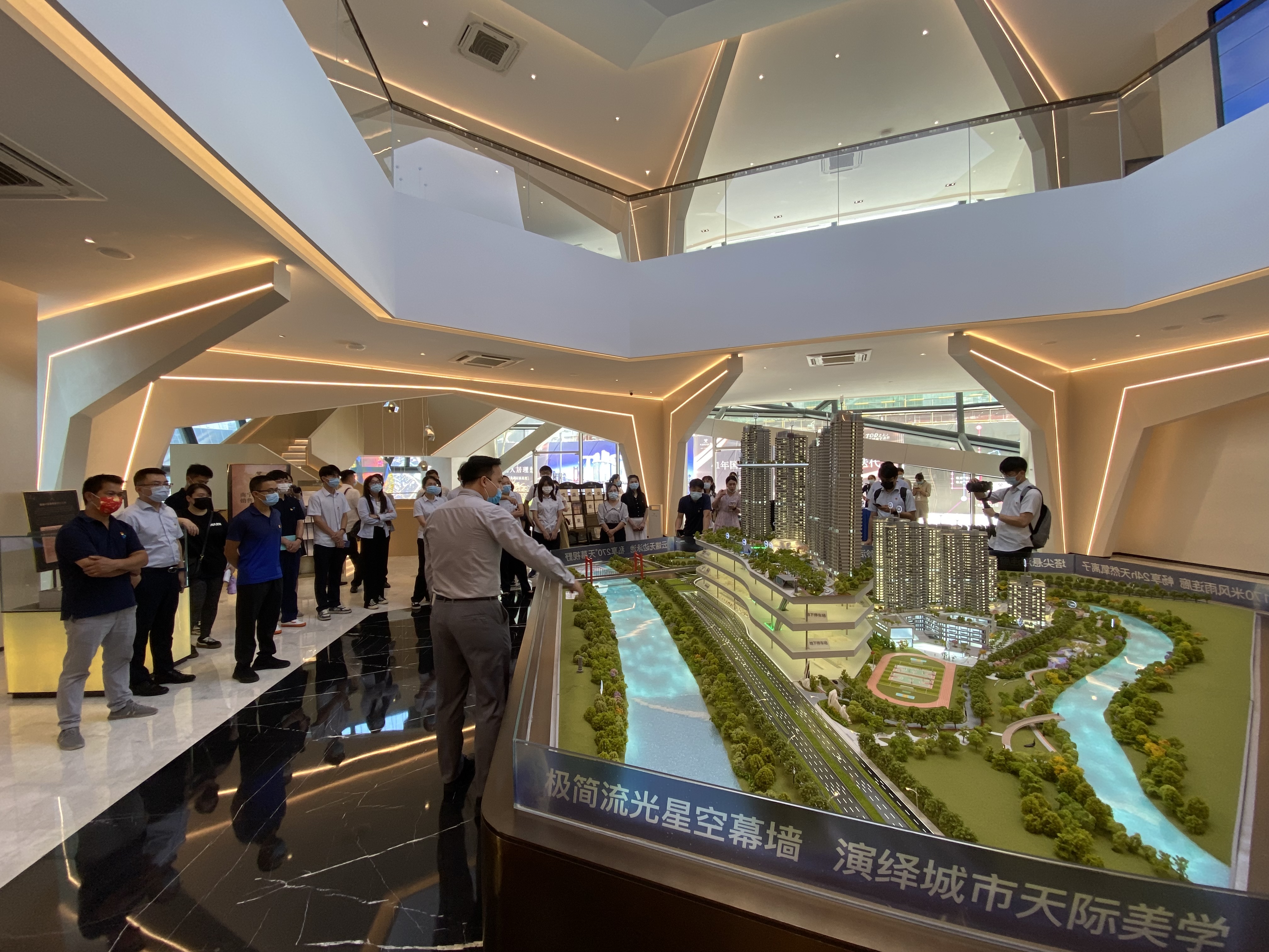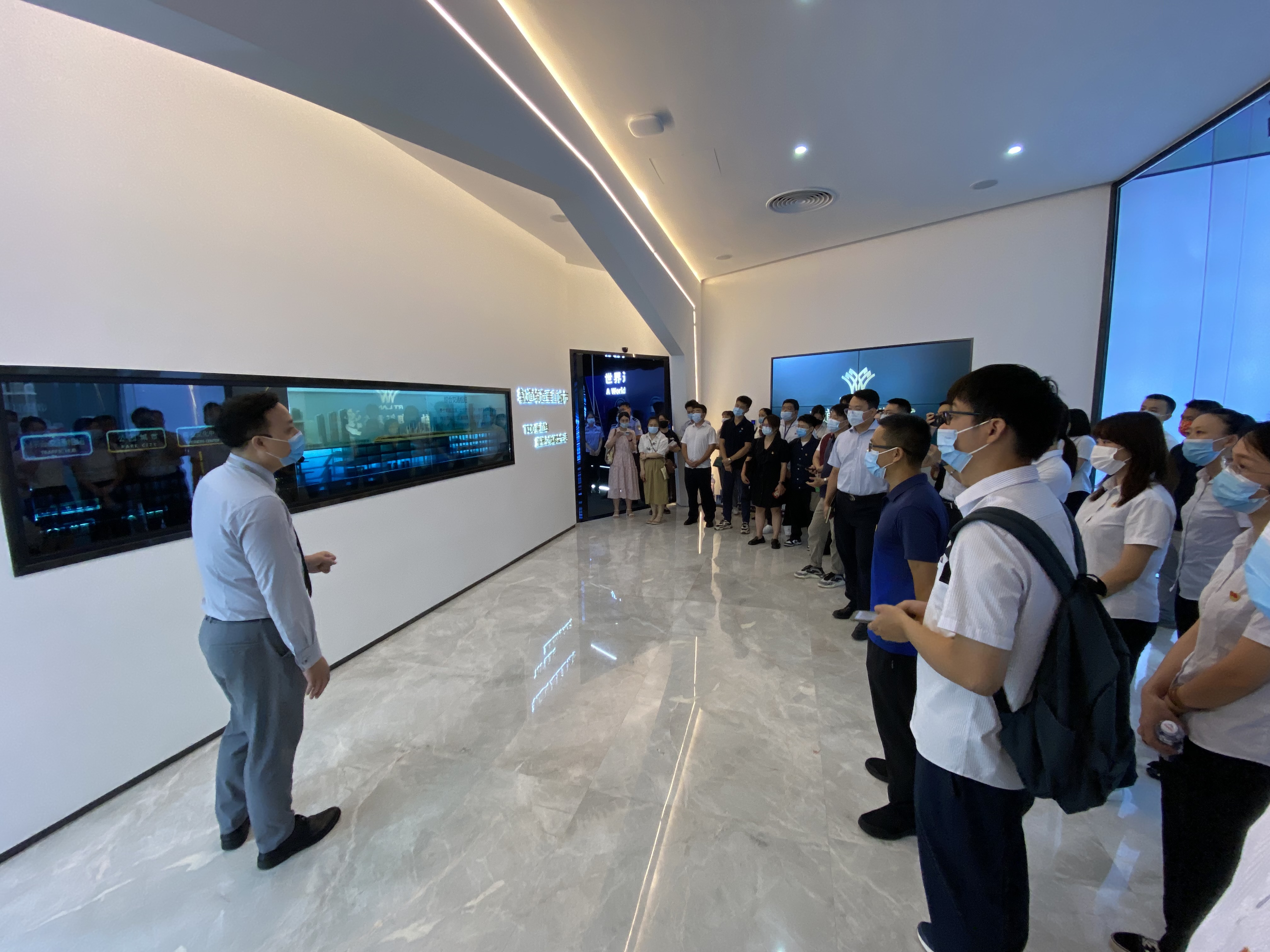 活動(dòng)中,主持人帶領(lǐng)各單位黨員代表參觀軌道地產(chǎn)TOD展館,介紹南寧軌道交通集團(tuán)的歷史和成果。