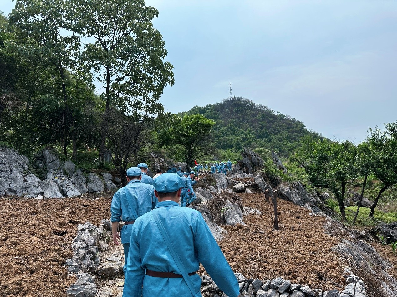在灌陽參觀湘江戰(zhàn)役新圩阻擊戰(zhàn)酒海井紅軍紀念園,黨員同志們懷著無比沉重的和崇敬的心情,聆聽了當年紅軍血灑湘江、氣壯山河的悲壯歷史。隨后廣大黨員干部,通過“穿一套紅軍服,走一段紅軍路”跟隨革命腳步,重走紅軍長征路,沿著革命先輩走過的崎嶇道路,一步一腳印,體會到了湘江戰(zhàn)役戰(zhàn)士的艱辛不易,一路追尋英雄將士們的紅色長征足跡,重溫那段難忘的歲月,在傳承紅色血脈的熏陶洗禮中,進一步傳承紅色基因,賡續(xù)紅色血脈。